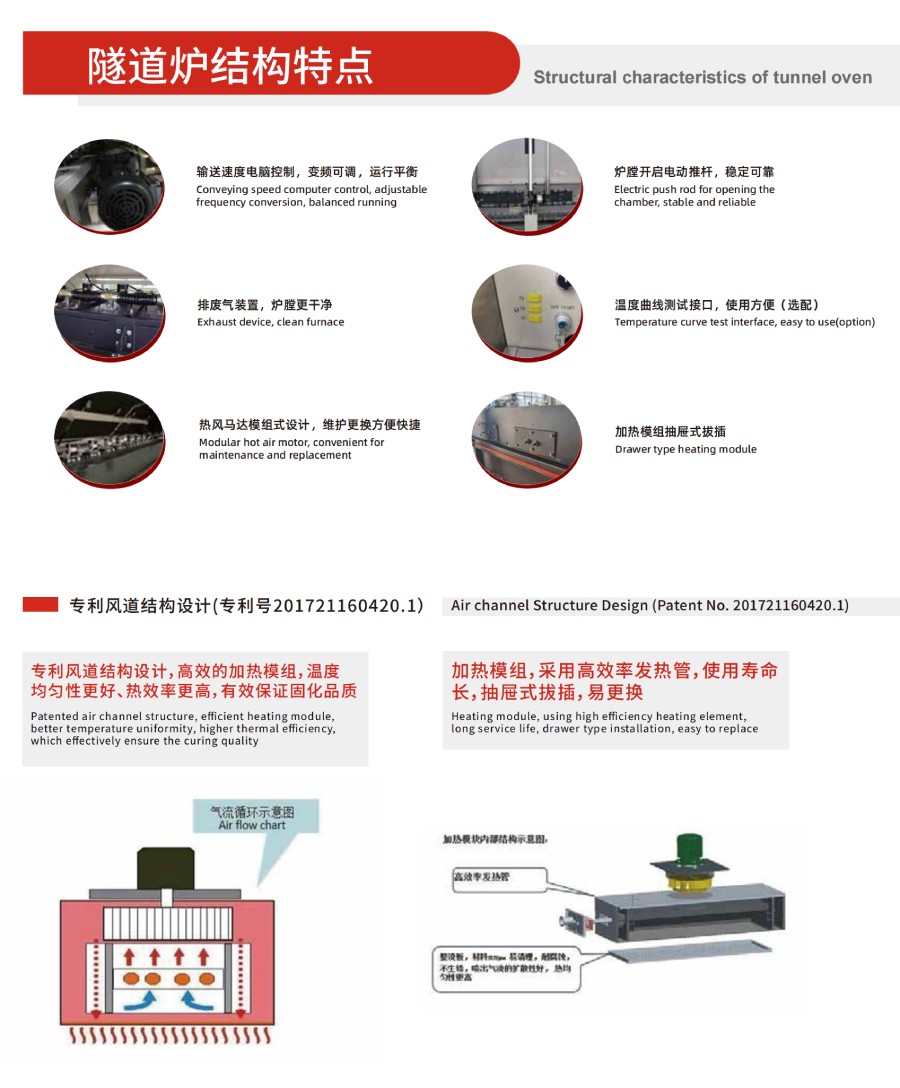適用于產(chǎn)能大, 固化時間長的產(chǎn)品, 如:三極管后端烘烤, Mini LED固晶烘烤等;