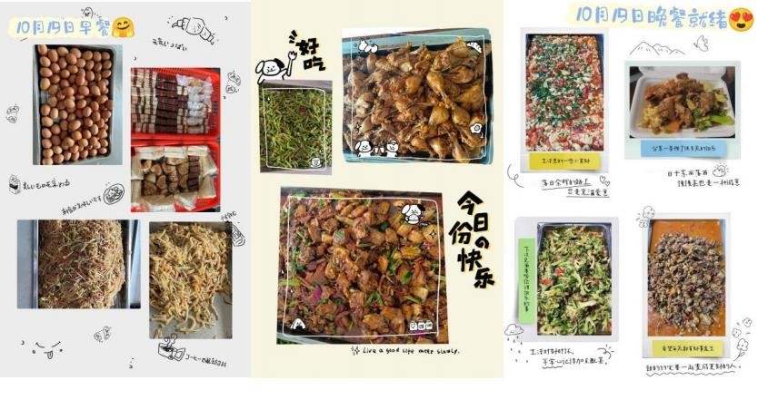 面對突發的疫情,住宿的員工就地封控4天,限制出入,按照疫情排查工作的統一部署,一波又一波的社區、街道各部門工作組頻繁到訪,旨在將公司與疫情區域剝離開來。基于公司對疫情形勢的準確預判,餐廳儲備了豐富的食材和充足的生活用品。從封控的第1天開始已經做好了住宿員工餐食的有序計劃,嚴格按照林總的要求保證正餐每餐兩葷一素,營養要豐富,讓住宿員工在封控期間吃的安心。