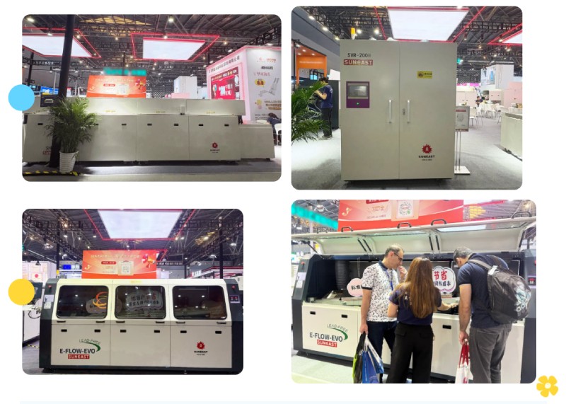 本次展會日東科技展出了多款設(shè)備,憑借全球首創(chuàng)的焊接區(qū)密封設(shè)計與分段傳輸方案,徹底解決了傳統(tǒng)隧道式波峰焊的卡板、維護(hù)難題,顯著提升焊接品質(zhì)與設(shè)備性能,成為展會焦點(diǎn)。同時展出的雙泵選擇性波峰焊、回流焊/波峰焊--EVO/氮?dú)獠ǚ搴讣按怪惫袒癄t等經(jīng)典設(shè)備,也吸引了眾多新老客戶駐足交流。