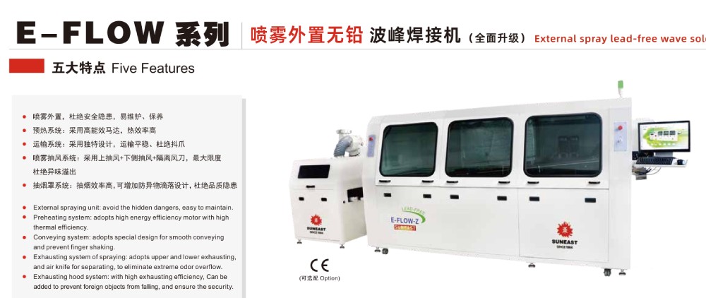 波峰焊(噴霧外置)E-FLOW-Z系列產(chǎn)品特點(diǎn):
